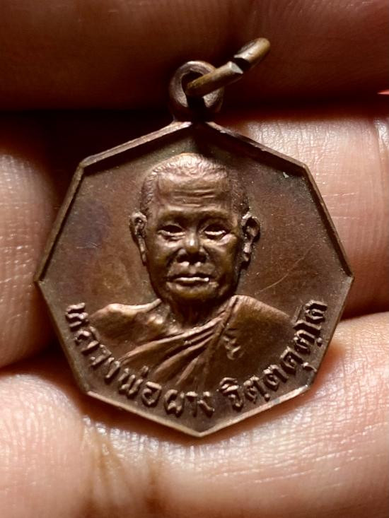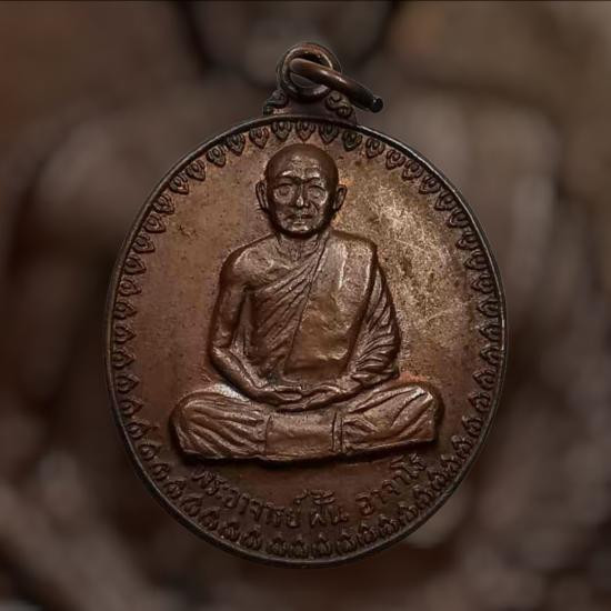 เหรียญอาจารย์ฝั้น วัดป่าอุดมสมพร จ. สกลนคร รุ่น 17 ปี 2514 หูขึด (นิยม) |