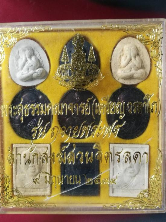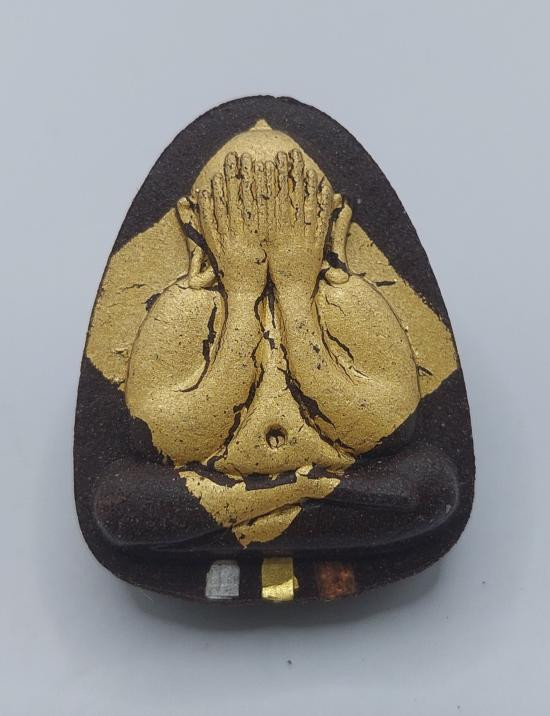 พระผงโต๊ะหมู่ รุ่นสร้างปราสาทฯ หลวงปู่หงษ์ พรหมปัญโญ สุสานทุ่งมน จ.สุรินทร์ ปี 45 เนื้อแก่มวลสารสีน้ำตาลเข้ม มีเกษาเยอะมาก สร้างแค่ 1000 องค์ |