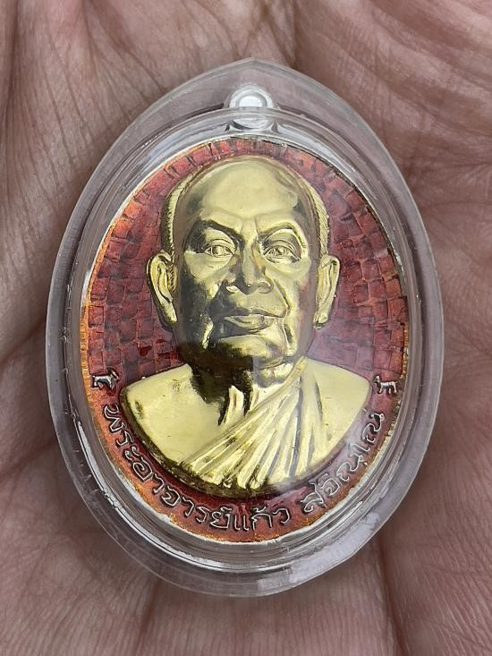เหรียญอภิมหาเศรษฐี หลวงปู่แก้ว สุจิณโณ วัดถ้ำเจ้าผู้ข้า จ.สกลนคร เนื้อเงินลงยา หน้ากากทองคำ หมายเลข 20 พร้อมรอยจาร |