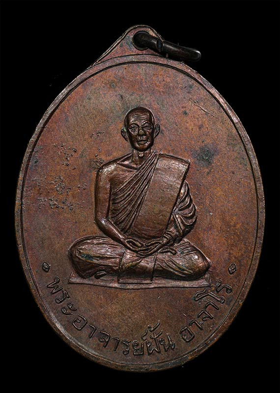 เหรียญอาจารย์ฝั้น รุ่นที่ 33 เนื้อทองแดงรมดำ สร้างถวายโดยวัดสุทธาวาส เมื่อปี 2516 เป็นวัดที่ตั้งพิพิธภัณฑ์ของท่านพระอาจารย์มั่น แจกเป็นที่ระลึกในงานทำบุญครบรอบวันมรณภาพของท่าน |