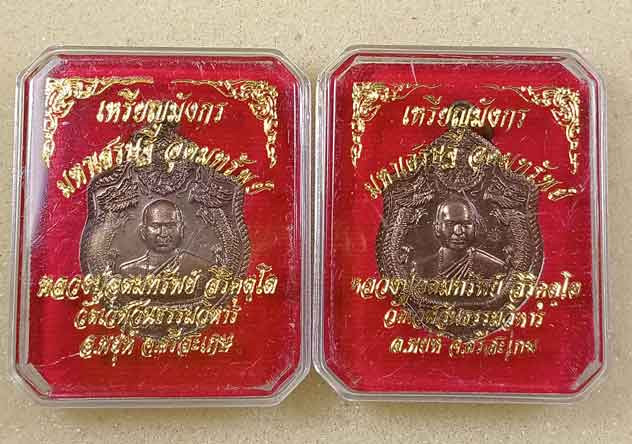 *ทีเดียว 2 องค์ ทองทิพย์รมซาติน เข้มขลังมาก เหรียญมังกรคู่168 รุ่นปลดหนี้168 หลวงปู่หมุน ฐิตสีโล ออกวัดบ้านจาน ปี66 เคาะเดียวแดง* |