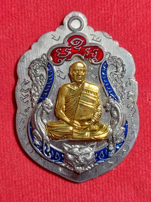 เคาะเดียวแดง เหรียญหลวงพ่อละม้าย วัดพรหมมาชดญาติการาม จ.สุรินทร์ ที่ระลึกงานคล้องช้าง กะไหล่เงินลงยาสีแดง |