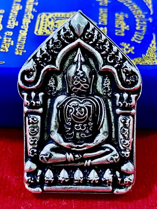 หลวงปูมหาศิลา จุฬามะณี เนื้อเงินฝังพลอย ผิวสวย จมูก100 เลข 195 กล่องครบ คัดสวยๆ |