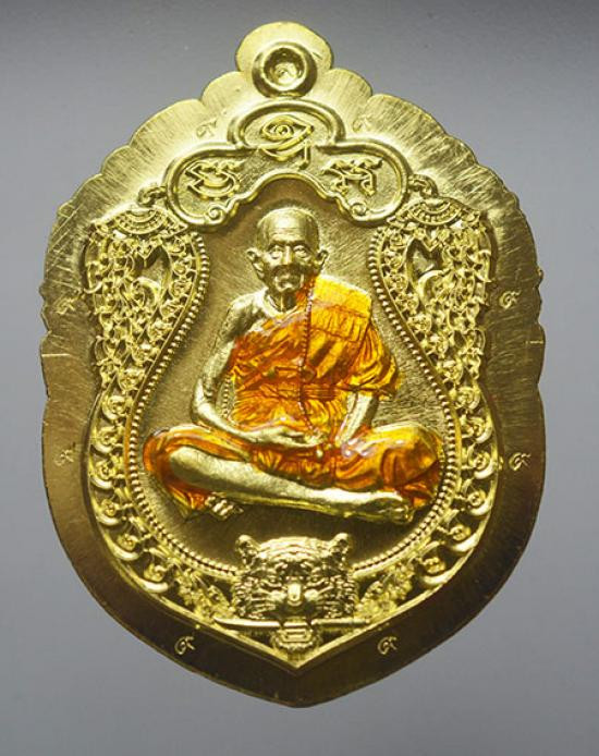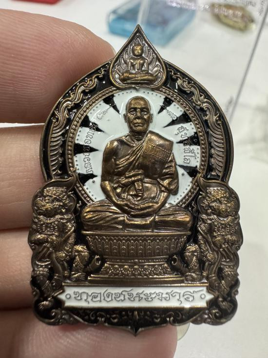 เหรียญนั่งพานทองชนะมาร ปี2565 เนื้อชนวน ลงยา no.1 มีกล่อง |