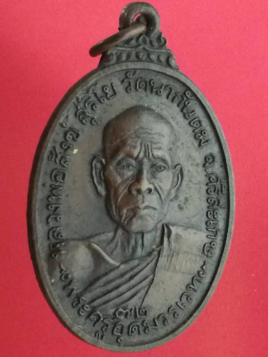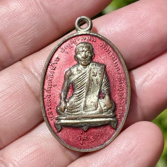 เคาะเดียวแดง เหรียญหลวงพ่อละม้าย วัดพรหมมาชดญาติการาม จ.สุรินทร์ ที่ระลึกงานคล้องช้าง กะไหล่เงินลงยาสีแดง |