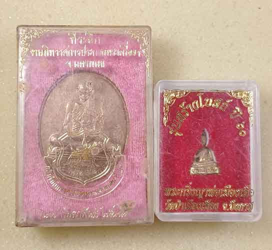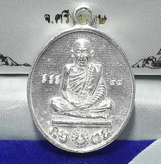 หลวงปูมหาศิลา จุฬามะณี เนื้อเงินฝังพลอย ผิวสวย จมูก100 เลข 195 กล่องครบ คัดสวยๆ |