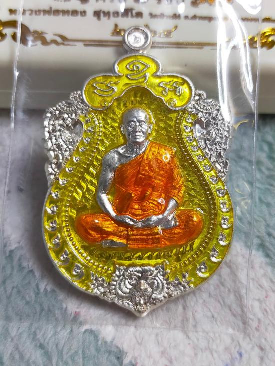 เหรียญห่วงเชื่อม ลพ.ทอง เนื้อเงินลงยา มีจารหลวงพ่อทอง หมายเลข77 |