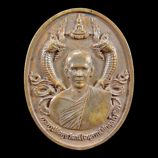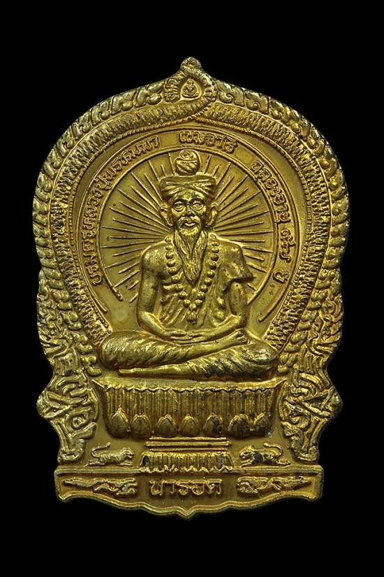 เหรียญ หลวงปู่คำพันธ์ รุ่นฉลองพระธาตุมหาชัย 39 วัดธาตุมหาชัย จ.นครพนม ปี 2539 เนื้อทองแดงกะไหล่ทอง |