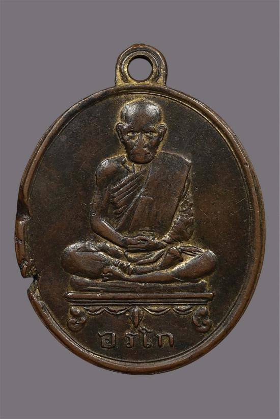 เหรียญหลวงปู่ชอบ ฐานสโม รุ่นอุดมพร เนื้อทองแดงรมดำ ปี 2537 |