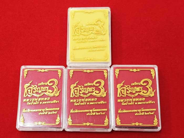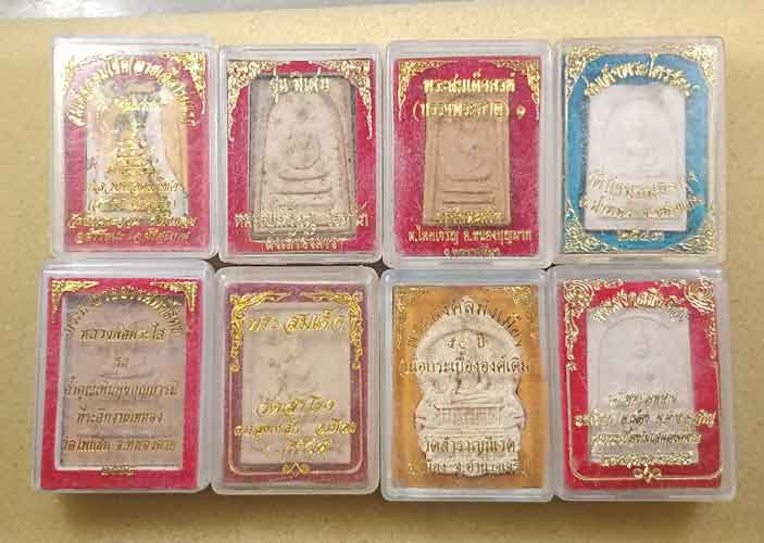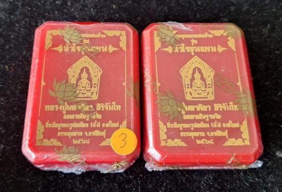 ...พระสมเด็จ รุ่น ชินบัญชร รวย รวย หลวงปู่ศิลา สวนสงฆ์แกแปะ วัดโพธิ์ศรีสะอาด จ.กาฬสินธุ์เนื้อดำใบลานก้นหอย อกก้อนมวลสาร กำไลทองคู่ หมุดนะ ตะกรุดทอง 3 ดอก หลังป้ายรวย No.55 พร้อมกล่องเดิมครับ |