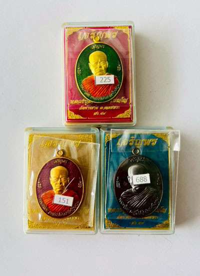 " วัดใจ เคาะเดียวแดง " เหรียญอายุยืน ฉลองอายุ 80 พรรษา หลวงปู่บุญ ปริปุนณสีโล วัดปอแดง (สวนนิพพาน) จ.นครราชสีมา ปี 2558 เนื้ออัลปาก้า จำนวน 3 เหรียญ |