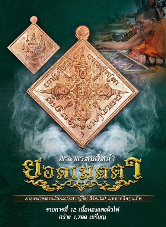 วัดใจ เริ่มที่100บาท เหรียญพรหมสี่หน้า หลวงปู่ศิลา สิริจันโท จ.กาฬสินธุ์ 2568 เนื้อทองแดงผิวรุ้ง (ซีลเดิม) |
