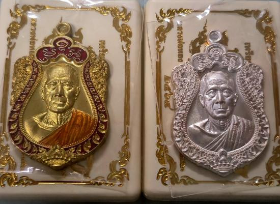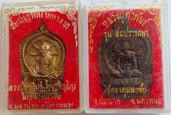 เคาะเดียวแดง.....เหรียญหล่อนั่งพาน รุ่นสมปรารถนา หลวงปู่คำพันธ์ วัดธาตุมหาชัย ปี ๒๕๓๗ และเหรียญนั่งพานรุ่นแรก (สมปรารถนา) รับจำนวน 2 เหรียญ พร้อมกล่องเดิมสภาพสวย |