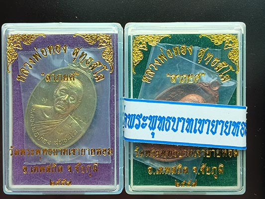 เหรียญห่วงเชื่อม หลวงพ่อทอง รุ่นประวัติศาสตร์ไตรภาคี ปี 2558 เนื้อทองแดงมันปู มีจาร หมายเลข 5819 |