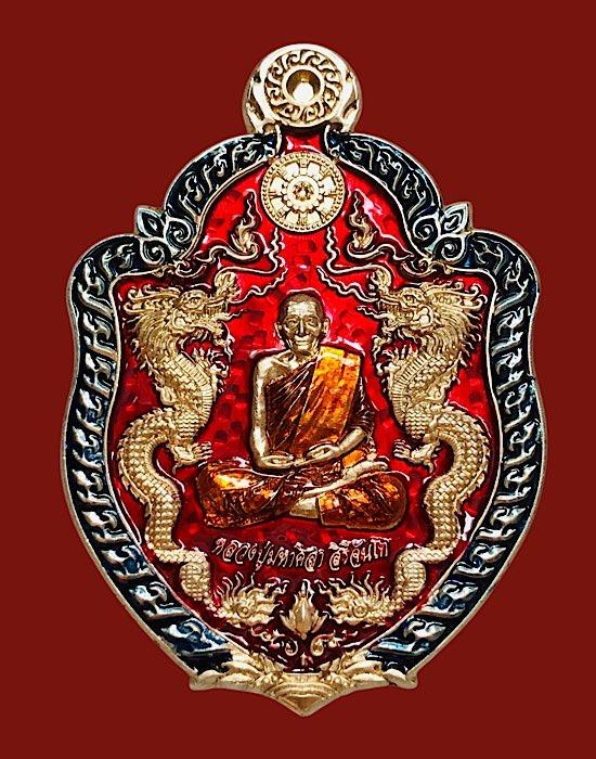 หลวงปู่มหาศิลา เจ้าสัวอุดมทรัพย์ เนื้ออัลปาก้าลงยาแดง จมูกโด่ง เลข 466กล่องครบ ยุดต้นปี64 หมุนเวียนน้อย คัดสวยๆ |