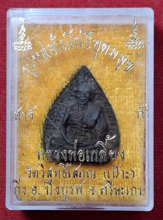 รูปหล่อใบโพธิ์อุดมสุข หลวงปู่เกลี้ยง วัดวิสุทธิโสภณ (เป๊าะ) จ.ศรีษะเกษ (เนื้อนวะ กล่องเดิม สภาพสวย) |