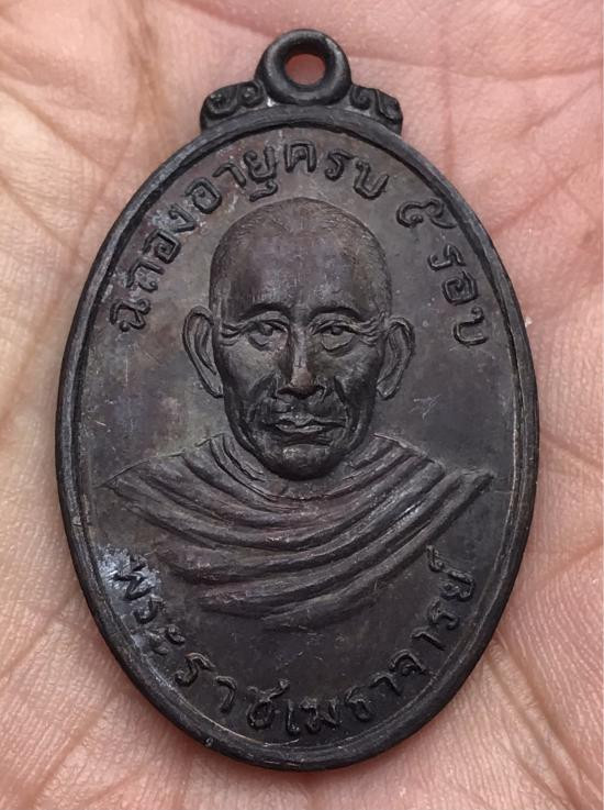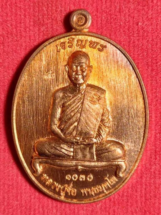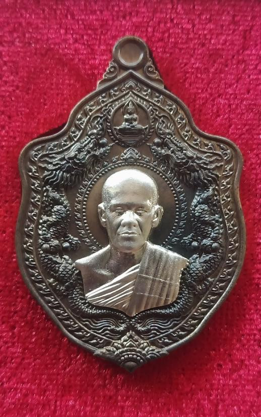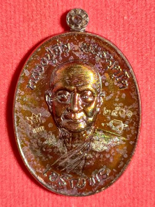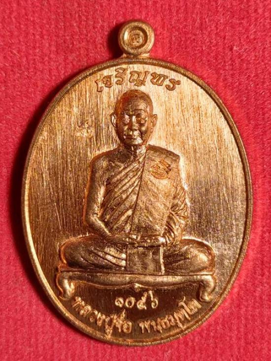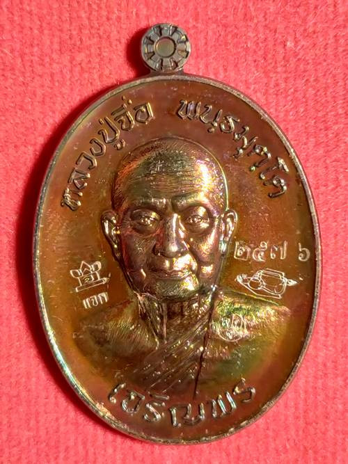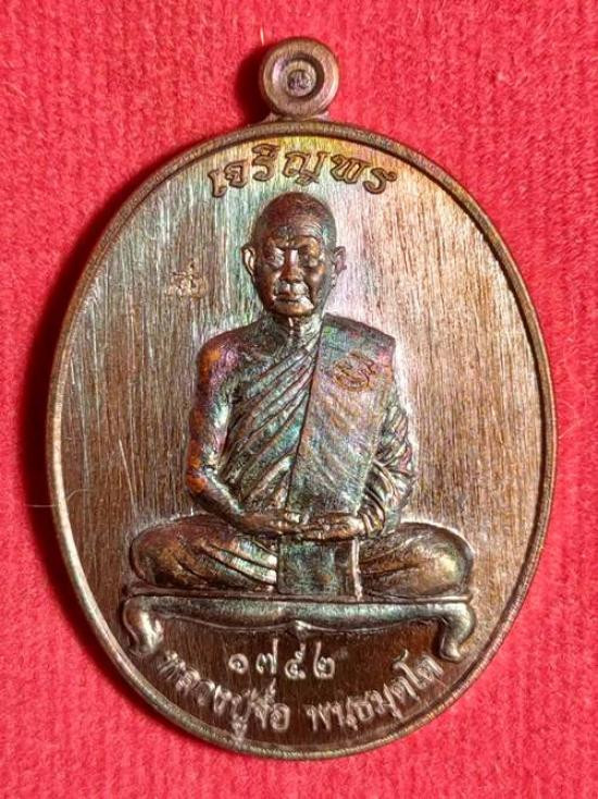 เหรียญเลื่อนสมณศักดิ์ หลวงพ่อทอง วัดพระพุทธบาทเขายายหอม จ.ชัยภูมิ เนื้อทองแดงรมมันปู ผิวรุ้งสวย