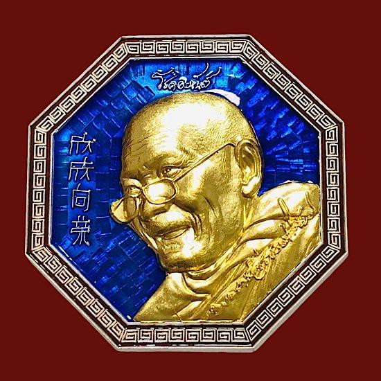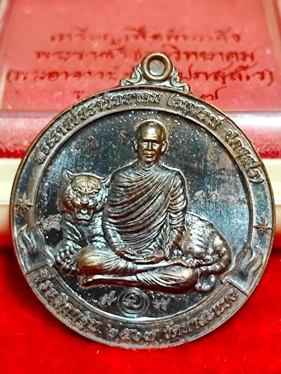 หลวงปู่มหาศิลา อายุวัฒนะมงคล81 มังกรคู่ เนื้อเงินผิวกระจกใสวิ้งๆ จมูก100 เลข106กล่องเดิม คัดสวยๆ |