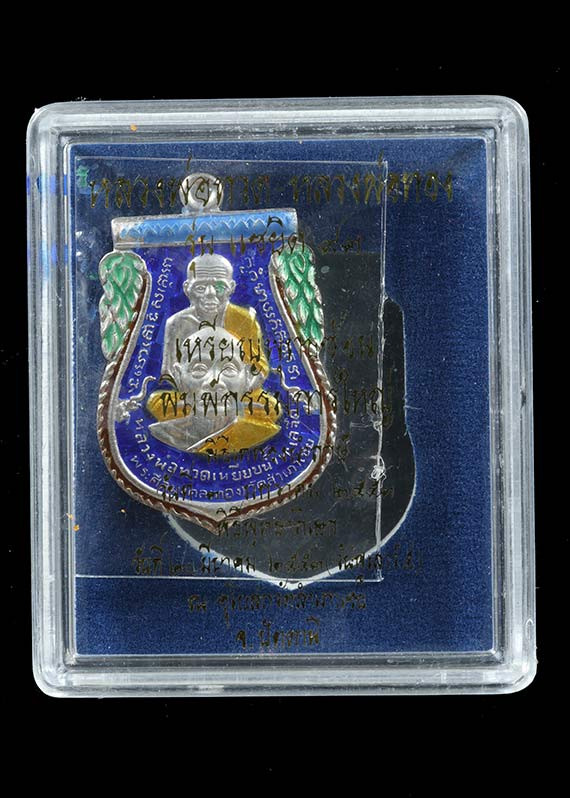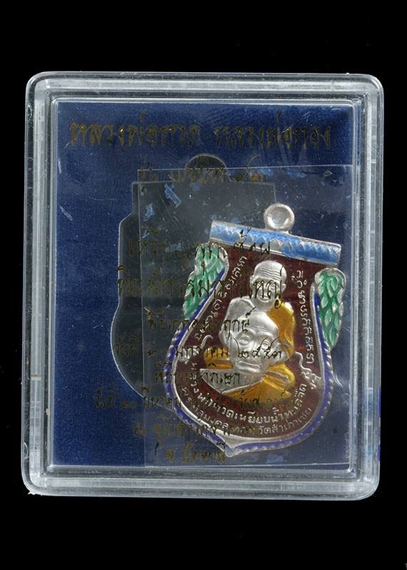 วัดใจ เหรียญหลวงพ่อแช่ม หลังหลวงพ่อช่วง วัดฉลอง ปี2497 เนื้อเงินลงยาสีแดง พิมพ์ ชอชิด สภาพใช้และล้างผิวครับ |
