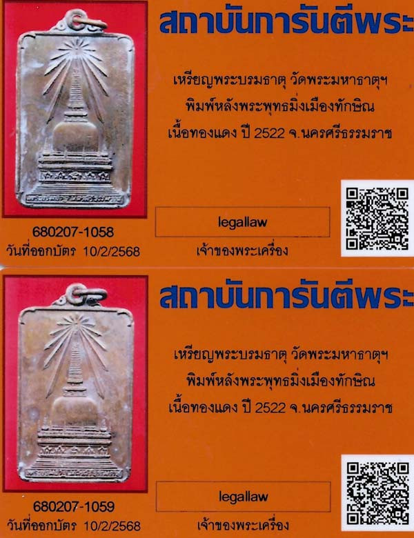 วัดใจ200พระพุทธนิรโรคันตรายชัยวัฒน์จตุรทิศ พระสี่มุมเมือง พิมพ์หน้าใหญ่ ตอก 3 โค๊ต ปี 2511 อาจารย์นำ พัทลุง |