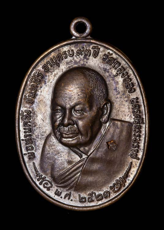 เหรียญหลวงพ่อคล้าย รุ่นฟ้าผ่า วัดสวนขัน จังหวัดนครศรีธรรมราช ปี 2536 นิยมยันต์สูง |