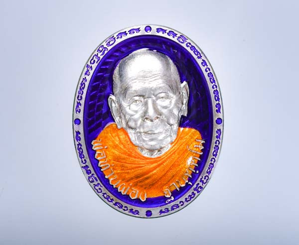 เหรียญหลวงพ่อแซ่ม วัดฉลอง เนื้อเงินลงถม สภาพสวยเดิมตามรูป ราคาเบาๆ |