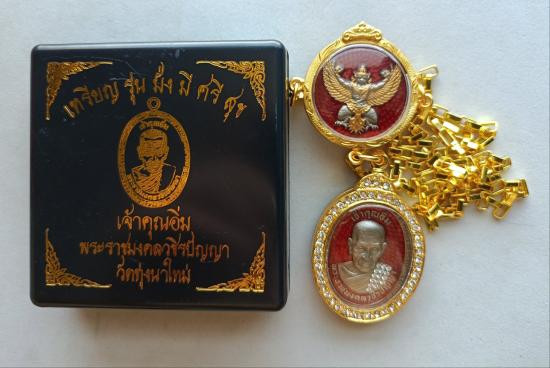 !! เคาะเดียว 100!! เหรียญ รุ่นรวยหมดหนี้ เลข 5 หลวงปู่อิ่ม วัดทุ่งนาใหม่ เนื้อ 3 k ลงยาลายธงชาติ เลี่ยมเดิมจากวัด |