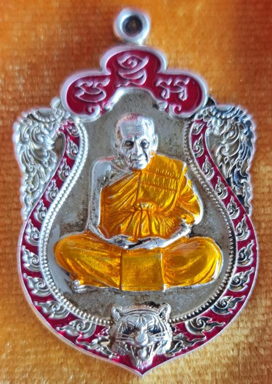 เหรียญรุ่นแรก พ่อท่านซุ่น วัดบ้านลานควาย เนื้อเงินลงยา |