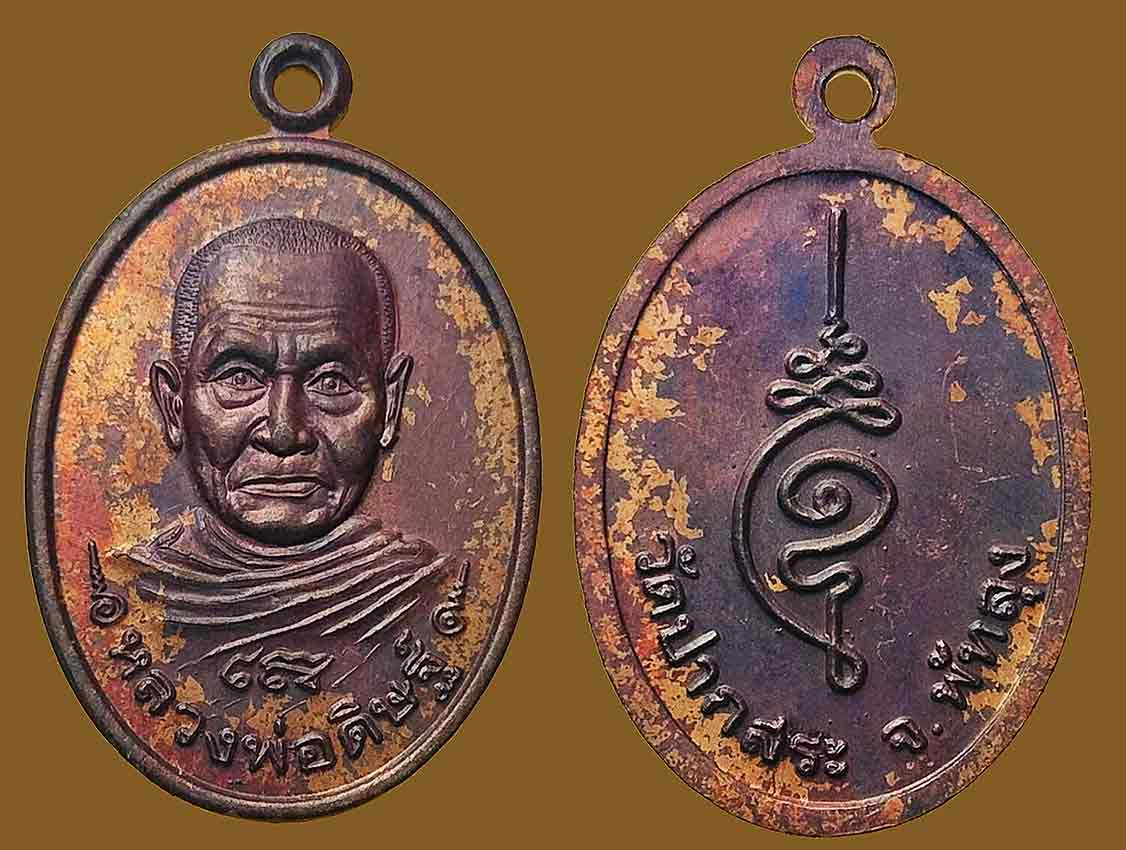 100 / เหรียญหลวงพ่อเพชร ติสโส วัดประเดิม อ.เกาะสมุย จ.สุราษฎร์ธานี รุ่นแรก ปี 2505 เนื้อทองแดงรมดำ |