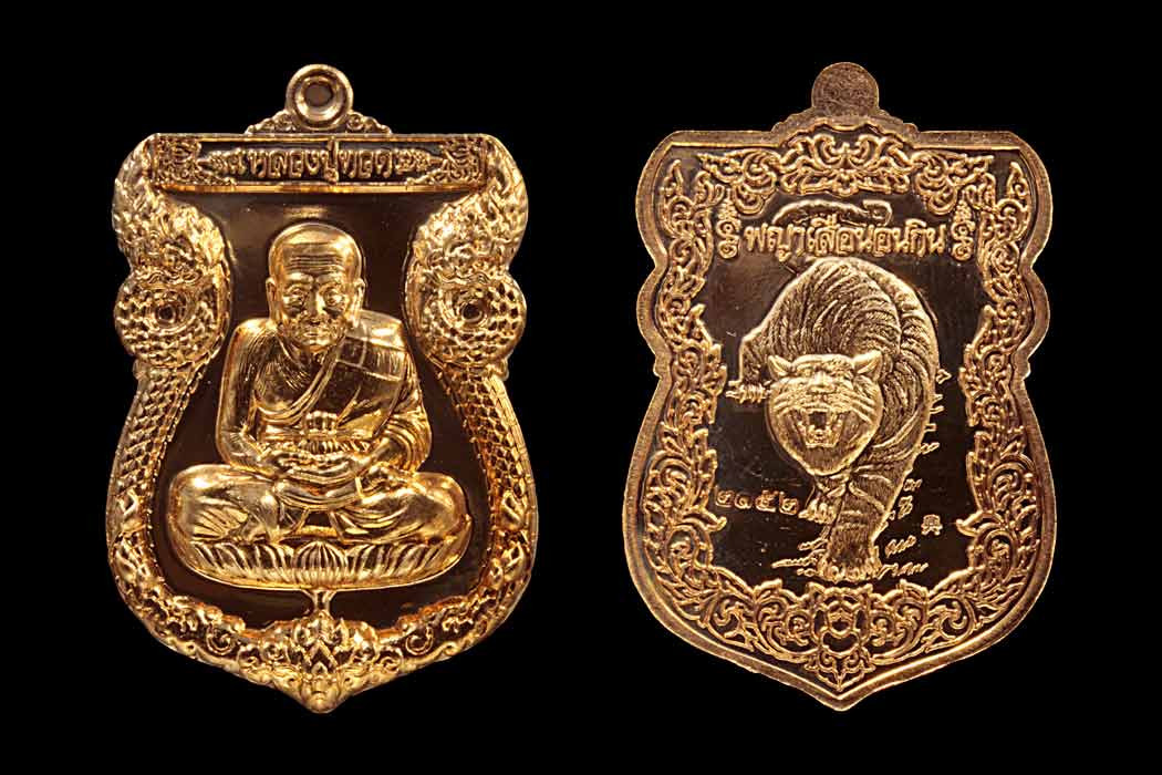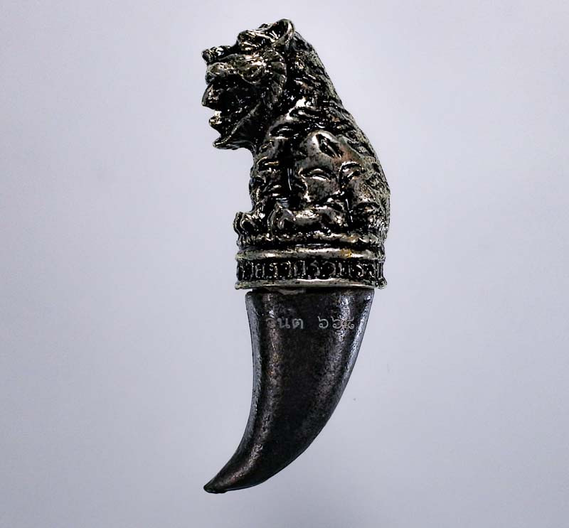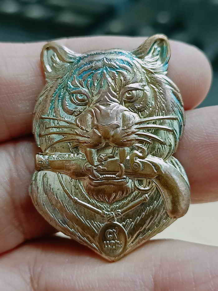 เสือมหาอำนาจ รุ่นแรก เนื้อนวะโลหะ ใต้ฐานเงิน มีจาร ยันต์ด้านหลัง แก้ม(ซ้าย-ขวา) เข่า (ซ้าย-ขวา) ตอกโค๊ตที่หัว และตอกโค๊ตที่ใต้ฐาน หมายเลข 115 อาจารย์ทอง วัดสำเภาเชย ปี 2547 จ.ปัตตานี |