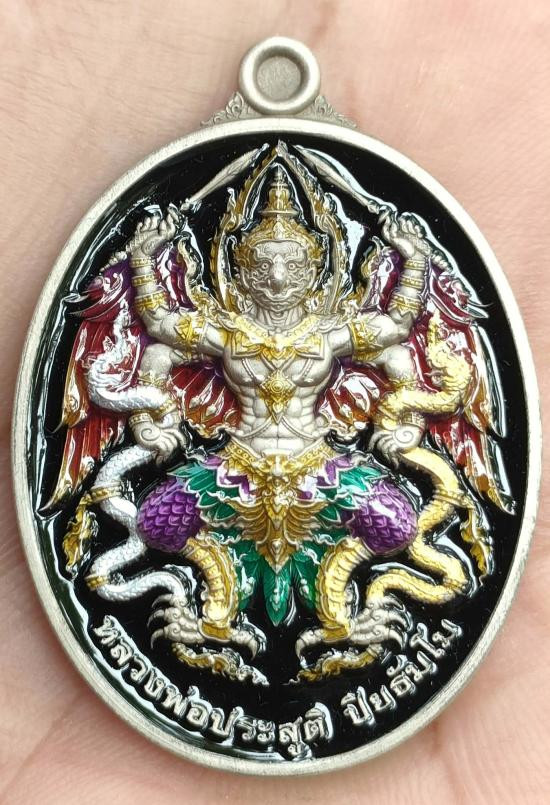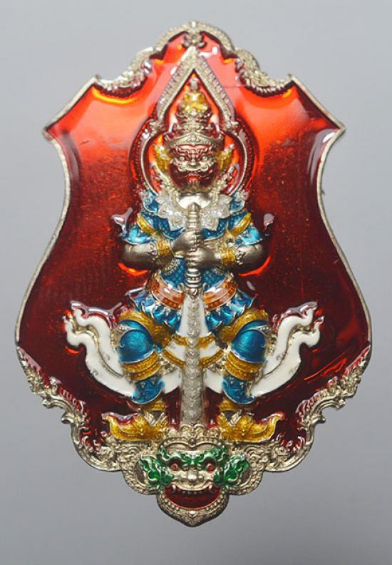 เหรียญท้าวเวสสุวรรณ รุ่น เงินไหลมา วัดพระมหาธาตุ นครศรีธรรมราช เนื้อกะหลั่ยเงิน ลงยาราชวดี พื้นแดง เลข 280 |