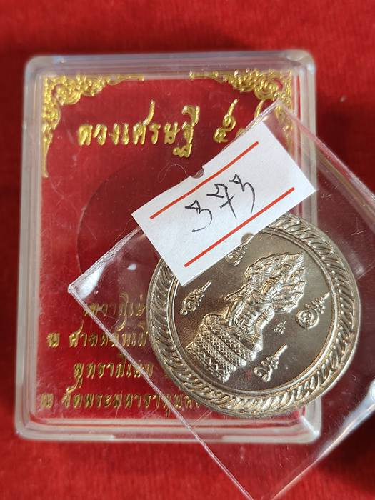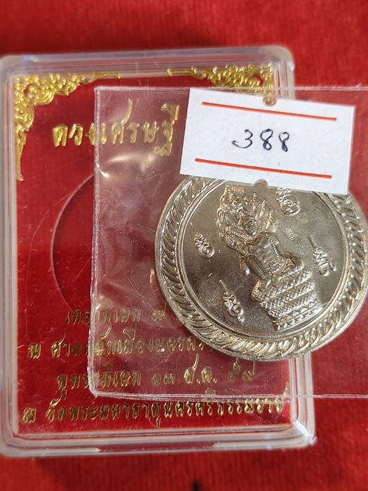 เหรียญท้าวเวสสุวรรณ รุ่น เงินไหลมา วัดพระมหาธาตุ นครศรีธรรมราช เนื้อกะหลั่ยเงิน ลงยาราชวดี พื้นแดง เลข 323 |