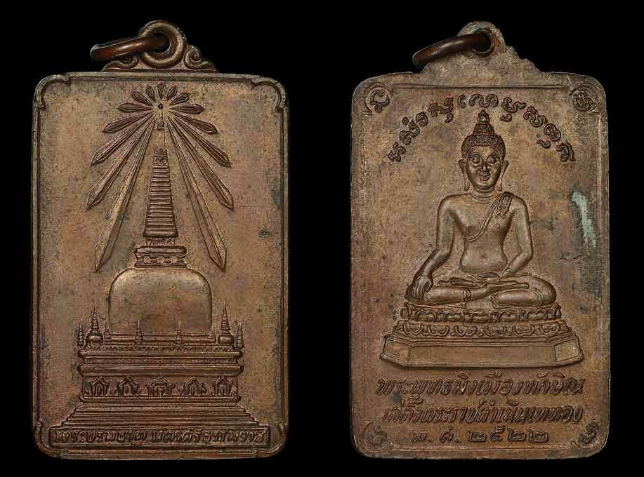 เหรียญพ่อท่านคล้าย-พระพุทธสีหิงค์ สร้าง พ.ศ.2512 วัดหน้าพระธาตุ เนื้ออัลปาก้าชุบนิเกิ้ล |