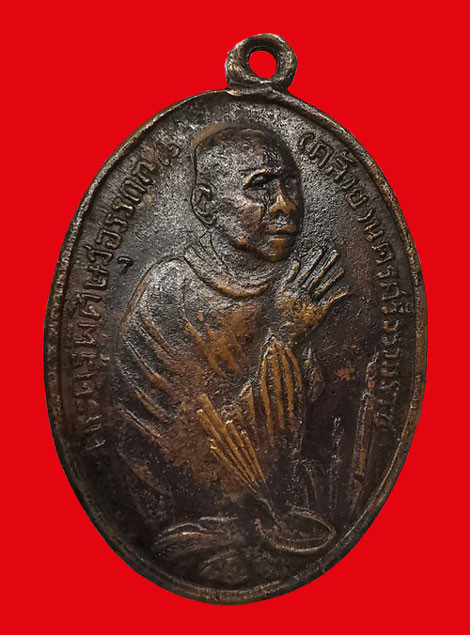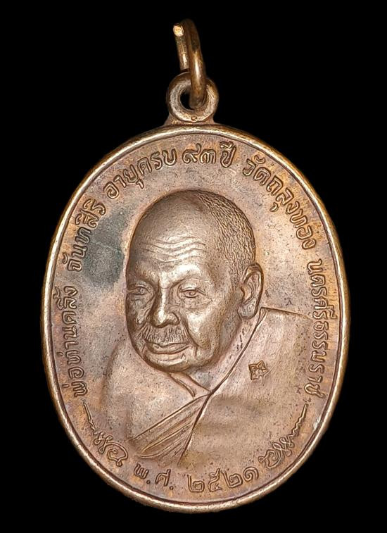 เหรียญพ่อท่านคลิ้ง หลัง ภปร วัดถลุงทอง จ.นครศรีธรรมราช ปี 2521 เนื้อทองแดง |