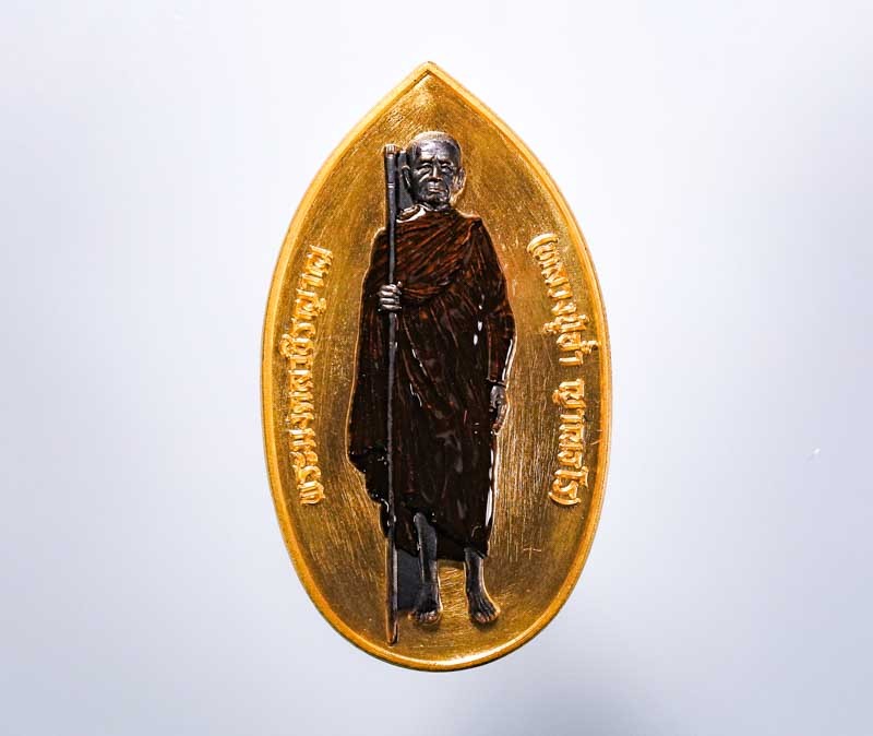 เหรียญรุ่นวาสนาได้เลื่อน พ่อท่านพรหม วัดพลานุภาพ ปี2553 เนื้อเงินลงยาหน้ากากทองคำ No.9 |