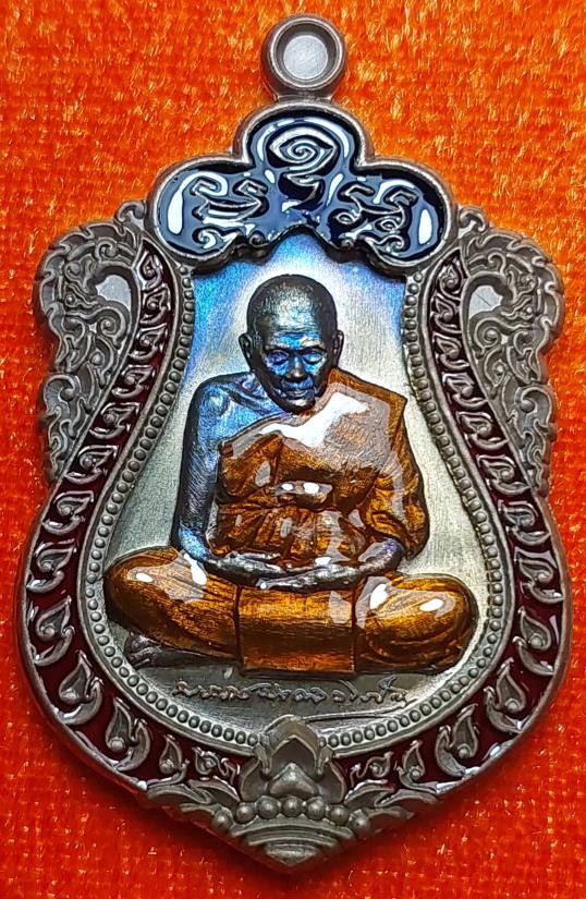 หลวงปู่อิ่ม วัดทุ่งนาใหม่ เสมา 9 รอบ เนื้อมหาชนวน หน้ากากขอบชนวนโบราณ ลงยาขอบแดง ซุ้มน้ำเงิน ลงยาจีวร จัดสร้าง 247 เหรียญ ตอกเลข 64 เคาะเดียว |