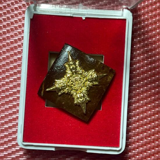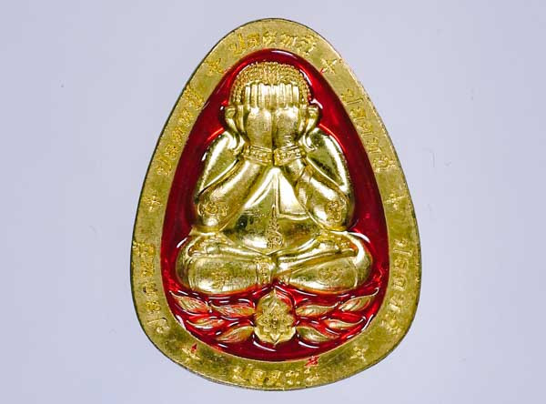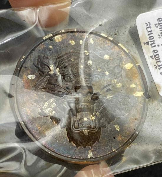 เหรียญโชคดี พญาเสือนอนกิน รุ่นแรก พระอาจารย์ประสูติ (หลวงพ่อประสูติ) วัดในเตา จ.ตรัง เนื้อทองทิพย์ลงยาแดง หน้ากากเสือโลหะอาถรรพ์ เลข 19 |
