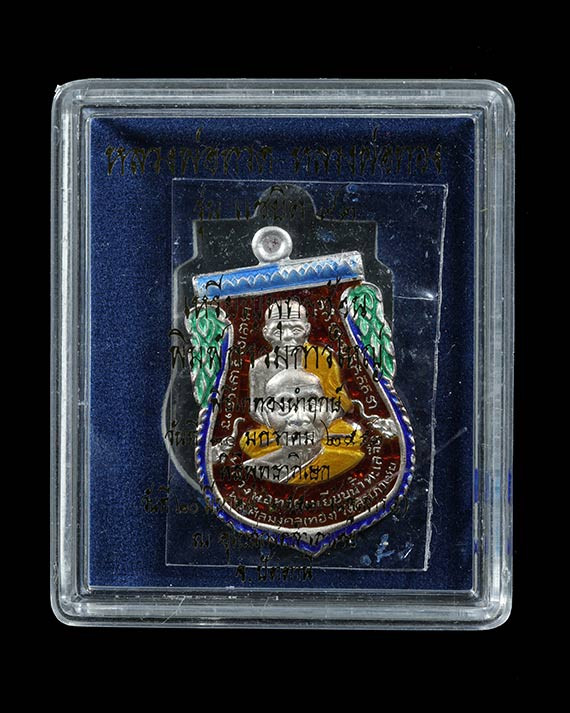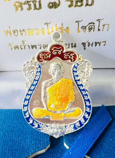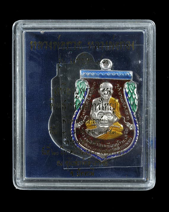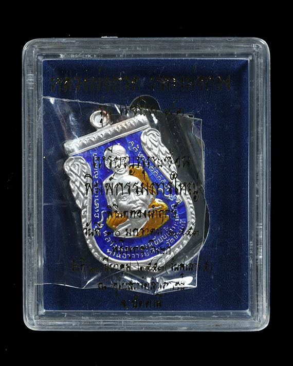 วัดใจ เหรียญเลื่อนรวยเหนือเมฆ รุ่นไอ้ไข่ กายสิทธิ์ วัดเสมาเมือง จ.นครศรีธรรมราช เนื้อเงินลงยาสีน้ำเงิน เลข39 |