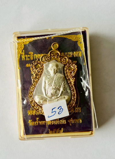 วัดใจ เหรียญเสมาที่ระลึกฉลองอายุวัฒนมงคล รุ่นครบ 7 รอบ หลวงพ่อโปร่ง โชติโก วัดถ้ำพรุตะเคียน จ.ชุมพร เนื้อเงินลงยา เลข53 |