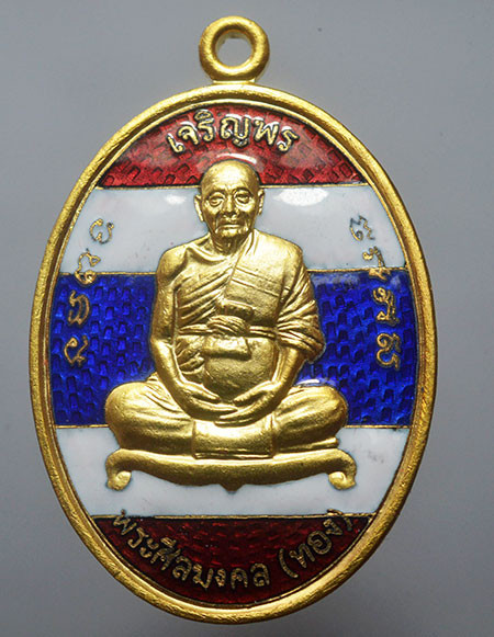 เหรียญอาจารย์ทอง รุ่น เจริญพร ปี 54 เนื้อทองแดงนอกลงยาสีธงชาติ โค๊ด เลข 4356 วัดสำเภาเชย ปัตตานี |