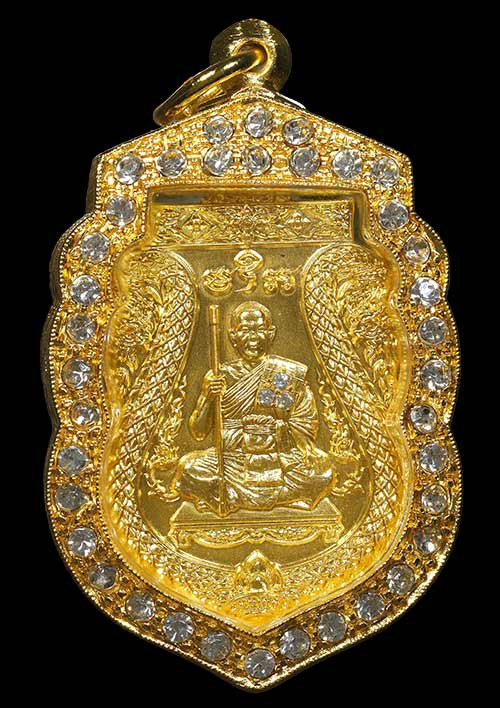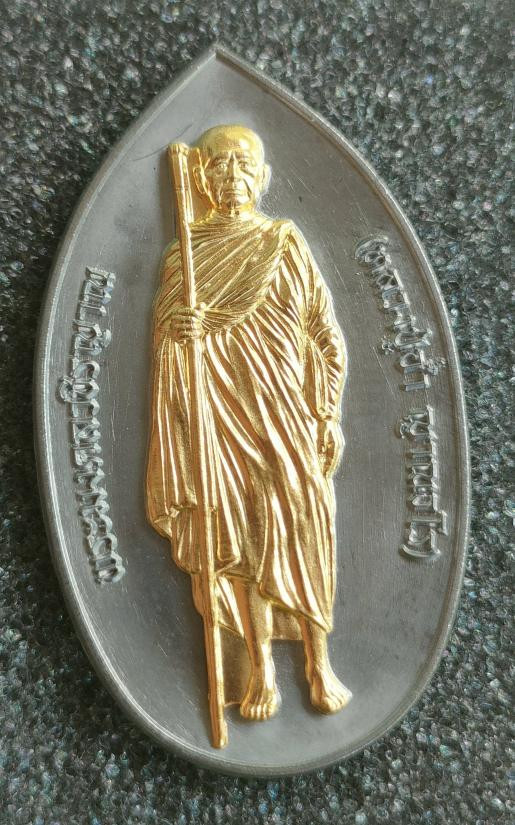 เหรียญยืน รุ่นรวยยังยืน พระมงคลวชิรญาณ(พ่อท่านอ่ำ ญาณธโร) ปัจจุบันอายุุ103ปี วัดโคกโพธิ์สถิตย์ ลานสกา จ.นครศรีฯ เนื้อตะกั่ว หน้ากากชุบทอง หลังเรียบจารมือเกจิ หมายเลข 35 พร้อมกล่อง สร้าง69องค์ |