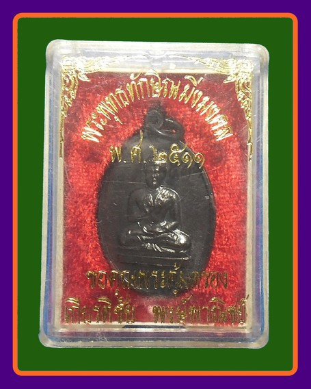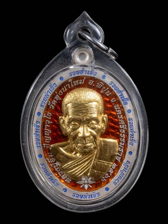 เหรียญรุ่น 5 แชะศัตรูพ่าย หลวงพ่อประสูติ ปิยธัมโม วัดถ้ำพระพุทธโกษีย์(วัดในเตา) จ.ตรัง เนื้อนวะรุ้งหน้ากากเงิน ติดจีวร ติดเกศา หลังหน้ากากชุบทอง จอกโค๊ต กรรมการ ตอกหมายเลข 4 |
