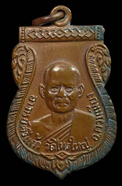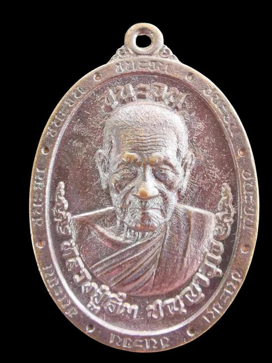 เหรียญพระครูพันธ์ วัดหนองส้ม รุ่น 2 เนื้อทองแดงรมดำ |