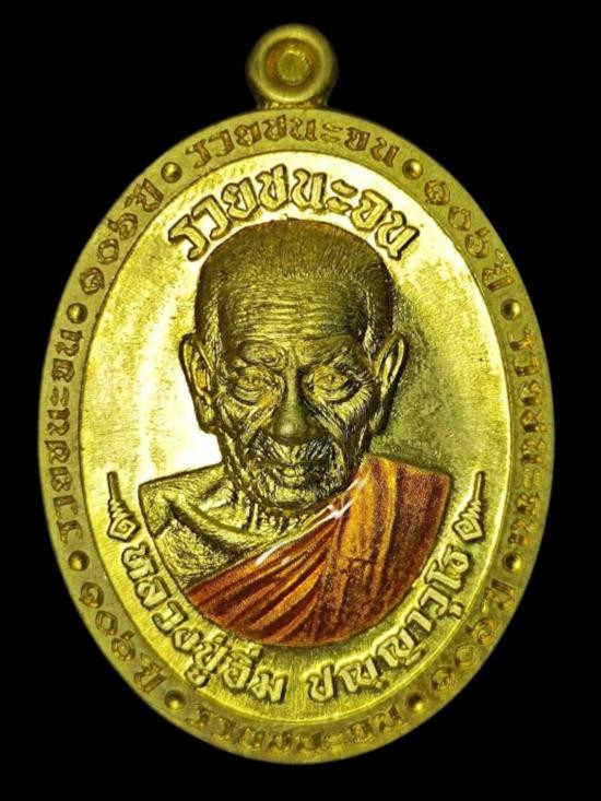 เหรียญรุ่นวาสนาได้เลื่อน พ่อท่านพรหม วัดพลานุภาพ ปี2553 เนื้อเงินลงยาหน้ากากทองคำ No.99 |