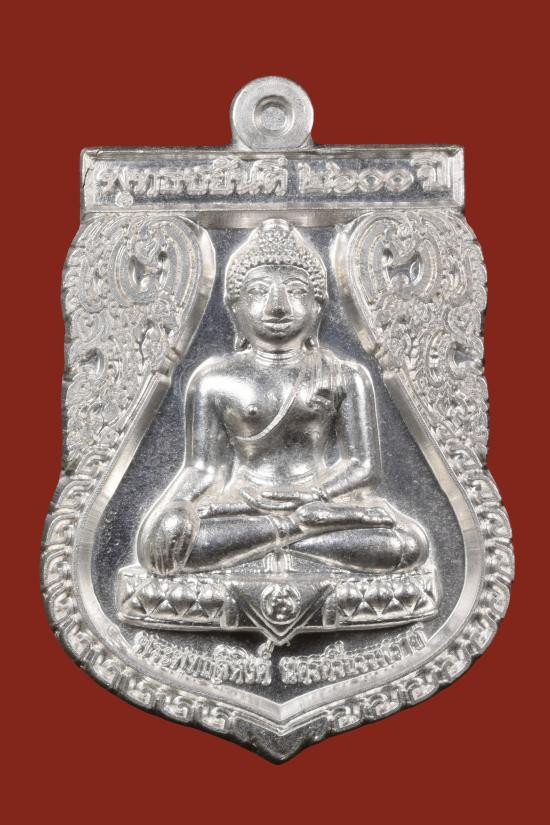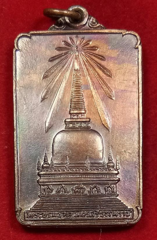 เหรียญเนื้อเงิน พุทธชยันตี 2600 ปี การตรัสรู้ขององค์สัมมาสัมพุทธเจ้า พระพุทธสิหิงค์ หลังพระบรมธาตุเจดีย์ นครศรีธรรมราช |