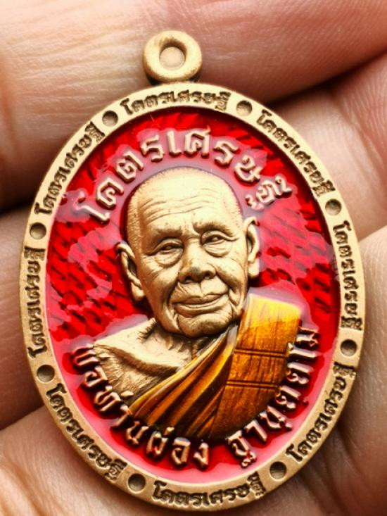 เหรียญนั่งพานเจริญพรพันล้าน ปี64 เนื้อทองทิพย์ลงยาแดง(แจกในพิธี) No.1416 |
