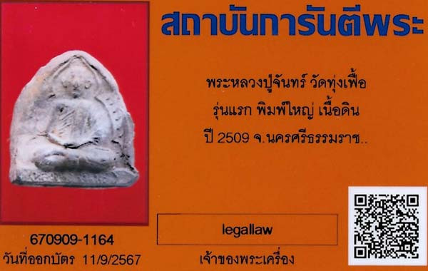 หายากที่สุด!!!หลวงปู่จันทร์ วัดทุ่งเฟื้อ รุ่นแรก พิมพ์ใหญ่ นครศรีธรรมราช+บัตรรับรองพระแท้*87 |