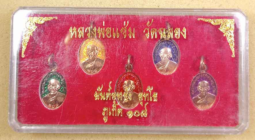 เม็ดแตงหลวงพ่อแช่ม วัดฉลอง จ.ภูเก็ต เนื้อเงินลงถม ไม่ทราบปีสร้าง |