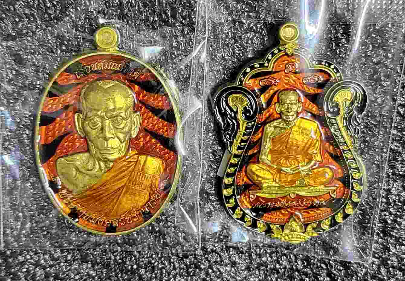 ข้อเดียวแดง เหรียญหลวงพ่อพัฒน์ รุ่นไตรมาส 63 พิมพ์เสมาคาบแก้ว รวม 2 เหรียญ |