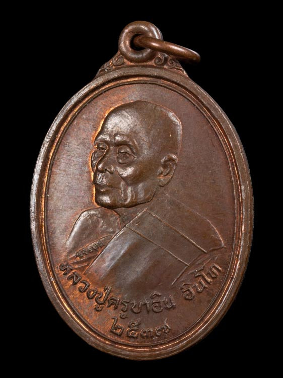 เหรียญครูบาเจ้าบุญชุ่ม หลังมังกร เนื้อทองแดงรมดำ ปี49 ผิวเดิม |